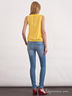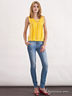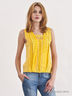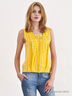 Великолепная блуза из гладкого материала. Фигурный вырез горловины. Широкие лямки. Ворот и полочка декорированы кружевными вставками и защипами. Низ изделия дополнен лентой на кулиске.