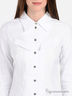 Элегантная блуза приталенного силуэта из тонкой, эластичной ткани. Модель с отложным воротником, с застежкой на пуговицы, с длинным прямым рукавом, дополненным манжетой на пуговицах. Полочка дополнена декоративными клапанами. Великолепно сочетается с офисным гардеробом.