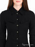 Элегантная блуза приталенного силуэта из тонкой, эластичной ткани. Модель с отложным воротником, с застежкой на пуговицы, с длинным прямым рукавом, дополненным манжетой на пуговицах. Полочка дополнена декоративными клапанами. Великолепно сочетается с офисным гардеробом.