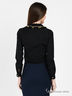 Эффектная блуза с округлым вырезом горловины, оригинальным воротом-рюшей, украшенным пришитой цепочкой с бусинами и длинным рукавом. Манжеты на пуговице, застежка на пуговицы. Рельефные вытачки. Для настоящей леди.