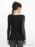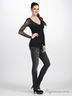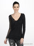 Детали: V-образный вырез горловины, длинные узкие рукава, оригинальная отделка одного рукава гипюром