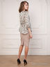 Летняя шифоновая блуза, приталенного силуэта. Круглый вырез горловины переходит в планку застёгивающуюся на пуговицах. Рукав втачной, одношовный, свободный, манжет на резинке. В комплекте с блузой идёт пояс, выполненный из основной ткани.