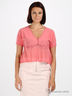 V-образный вырез. Застегивается на маленькие пуговицы. Короткие цельнокройные рукава.