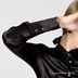 Стильня блуза на пуговицах. Выполнена из атласной ткани. Дополнена отложным воротот и высокими манжетами.