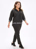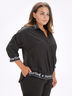 Блуза свободного кроя с отложным воротником. V-образный вырез горловины, спущенный рукав и удлиненная спинка. В боковых швах неглубокие разрезы. Воротник, манжеты и низ полочки из довяза с надписью. Длина изделия (по спинке): 75 см рукав (от горловины): 59 см. Параметры модели на фото: 106*80*115 см.
