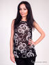 Женская комбинированная блузка без рукавов полуприлегающего силуэта. Вырез горловины круглый. Низ изделия -фигурный. Перед блузки - из плательной ткани, спинка-трикотаж.