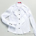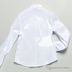 Приталенная модель с воротом-стойкой застегивается на пуговицы на полочке по всей длине изделия. Манжеты на пуговицах. Планка-застежка и плечи украшены необычными оборками.
