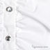 Приталенная модель с отложным воротом и рукавами-фонариками застегивается на пуговицы на полочке по всей длине изделия. Манжеты на пуговицах. Планка-застежка оформлена защипами. Полочка украшена логотипом из страз.