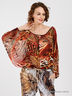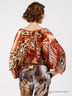 Детали: округлый вырез горловины, рукава летучая мышь, завязки на спинке, низ блузы и края рукавов на резинке, глубокий вырез с запахом на спинке.