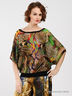 Детали: округлый вырез горловины и окаты рукавов декорированы лентой-косичкой, рукава летучая мышь, стильный принт.