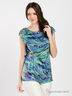 Великолепный блузон свободного силуэта из тонкого, мягкого трикотажа. Округлый вырез горловины. Короткие рукава. Полочка декорирована оригинальной драпировкой и изящным декоративным элементом.