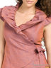Элегантная блуза. Приталенный силуэт. Глубокий V-образный вырез с запахом. Декорирована широкими воланами.