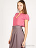 Блузка яркого исполнения и приталенного силуэта придется по душе женщине для создания элегантного образа. Изделие с короткими рукавами, изящным вырезом горловины. Красивый вариант для вечера и работы в офисе.