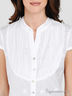 Детали: круглый вырез; короткий рукав; застегивается на пуговицы; на полочке простроченные складки; декорирована вышивкой в тон