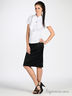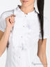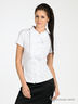 Блузка приталенного кроя из хлопка. Воротник-стойка. Короткие рукава. Застегивается на кнопки. Полочка украшена оборками в складку.