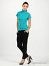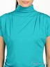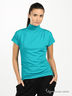 Стильная блузка приталенного покроя с небольшим воротником-стойкой. Застежка на молнию. Короткие рукава. Изделие декорировано элегантными складками.