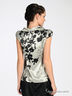 Элегантная блузка из атласной ткани. Отложной воротник с запахом застегивается на красивую пуговку. Присборенные короткие рукава. Под грудью декоративные складочки.