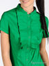 Блузка приталенного кроя из хлопка. Воротник-стоечка. Короткие рукава. Застегивается на кнопки. Полочка украшена оборками в складку.