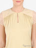 Эффектная кружевная блуза прямого силуэта из тонкой трикотажной ткани с кружевными гипюровыми вставками. Застежка на крючок на полочке. Округлый вырез горловины, короткий рукав-фонарик. Такая блуза будет великолепно сочетаться как с юбкой, так и с брюками.