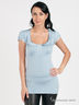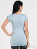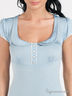 Детали: округлый вырез горловины, короткий рукав, декоративный воротник, застежка на три пуговицы на полочке, сборки