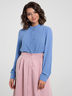 Легкая блуза на пуговицах выполнена из итальянского шифона. Модель рубашечного кроя, вырез горловины оформлен небольшим воротником стойка. Длинные втачные рукава обработаны манжетами.