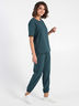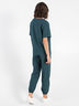 Легкая блузка выполнена из льняного полотна однотонной расцветки. Модель свободного кроя. Округлый вырез горловины обработан внутренней обтачкой. Короткие втачные рукава обработаны манжетами