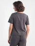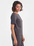 Блузка прямого силуэта с коротким рукавом, в заднем шве потайная молния, округлый вырез горловины обработан притачной обтачкой.