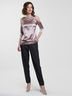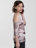 Блузка из мягкого и приятного к телу атласа с открытыми плечами.Вырез округлый, рукав 3/4.
