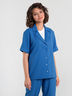 Легкая блуза свободного кроя выполнена из льняного полотна. Модель рубашечного кроя, V-образный вырез горловины оформлен отложным английским воротником. Втачные рукава длиною до локтя обработаны манжетами.