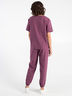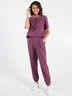 Легкая блузка выполнена из льняного полотна однотонной расцветки. Модель свободного кроя. Округлый вырез горловины обработан внутренней обтачкой. Короткие втачные рукава обработаны манжетами.
