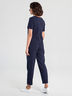 Блузка прямого силуэта с коротким рукавом, в заднем шве потайная молния, округлый вырез горловины обработан притачной обтачкой.