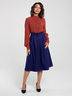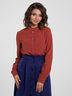 Легкая блуза на пуговицах выполнена из итальянского шифона. Модель рубашечного кроя, вырез горловины оформлен небольшим воротником стойка. Длинные втачные рукава обработаны манжетами.