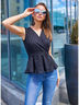 Блуза приталенного кроя без рукавов, с V-образным вырезом горловины.