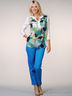 Модная блуза из высококачественного материала. Округлый вырез горловины с разрезом. Разрез застегивается на планку с пуговицами. Прямые рукава 3/4. Небольшие разрезы в боковых швах. Фигурная линия нижнего края изделия.