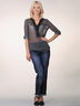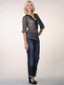 Блуза из потрясающего материала. V-образный вырез с запахом. Ворот дополнен вставкой из контрастной ткани. Длинные прямые рукава с отворотами.