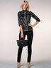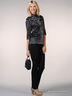 Эффектная блуза выполнена из гладкого, качественного материала. Стояче-отложной ворот. Застежка на планку с пуговицами. Прямые рукава длиной до локтя. Блуза декорирована контрастным кантом.