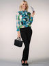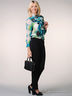 Оригинальная блуза из тонкого, высококачественного материала. Стояче-отложной ворот. Застежка на планку с пуговицами. Полочка декорирована воланами. Прямые рукава 3/4 на манжетах.