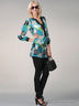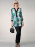 Блуза из потрясающего материала. V-образный вырез с запахом. Ворот дополнен вставкой из контрастной ткани. Длинные прямые рукава с отворотами.