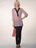 Блуза из потрясающего материала. V-образный вырез с запахом. Ворот дополнен вставкой из контрастной ткани. Длинные прямые рукава с отворотами.