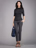 Трикотажная блузка, воротник стойка из отделочной ткани, косая обманная застежка на маленьких пуговках. Отрезная талия украшенная заложенными складками. Все это придает неотразимый внешний вид.