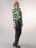 Модная блуза из тонкого, высококачественного материала. Ворот-стойка на завязках. Полочка декорирована воланами. Длинные свободные рукава на манжетах с пуговицами. Низ изделия собран на резинку.