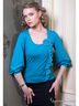 Блуза свободного кроя с широкими рукавами украшена рюшами в виде цветка