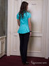 Блузка приталенного кроя за счет складок и рубашечным воротником.