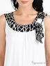Детали: округлый вырез горловины декорирован атласной лентой, лямки, складки, низ изделия посажен на манжету