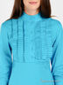 Детали: ворот-стойка; рукав 7/8 с манжетой; застегивается на пуговицы на полочке; декорирована оригинальными оборками
