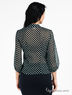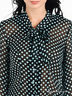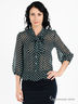 Детали: небольшой ворот-стойка переходит в завязку, застежка на пуговицы, рукав 7/8 посажен на манжету, принты