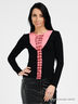 Модная блуза приталенного силуэта. Выполнена из мягкого эластичного трикотажа средней плотности. Округлый вырез горловины. Длинные рукава. Передняя часть оригинально украшена контрастными рюшами. Прекрасный классический вариант на каждый день!