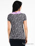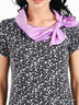 Детали: округлый вырез горловины декорирован атласной лентой, короткий рукав с манжетой, низ изделия посажен на манжету