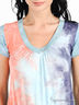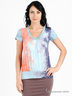 Детали: V-образный вырез горловины, короткий рукав, складки, принты, низ изделия посажен на манжету