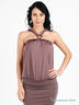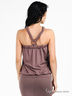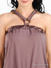 Детали: плетеная лямка на шее с декоративным элементом, в верхнюю атласную часть изделия вставлена резинка, складки, низ изделия посажен на манжету